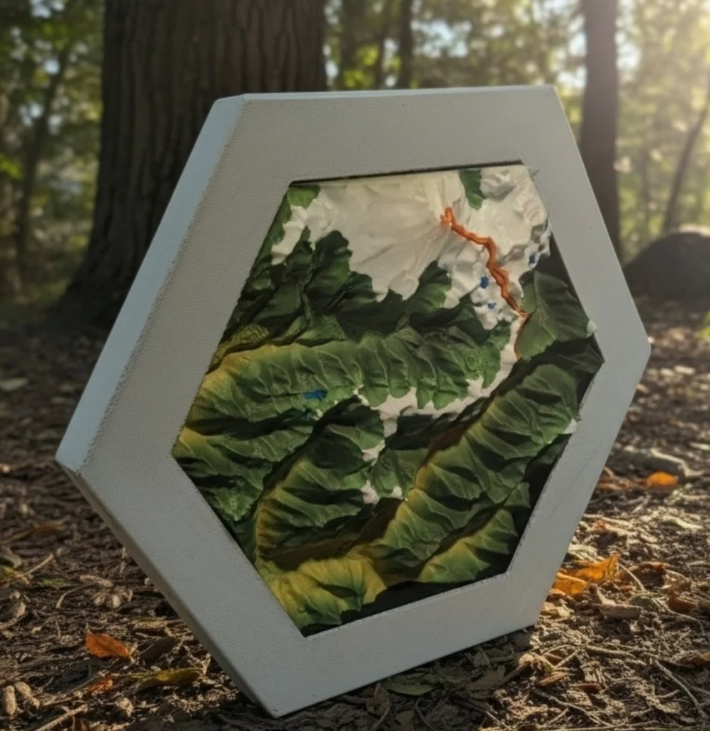 Meticulously crafted 3D topographic reliefs of your epic adventures from scenic hikes to life-changing journeys.